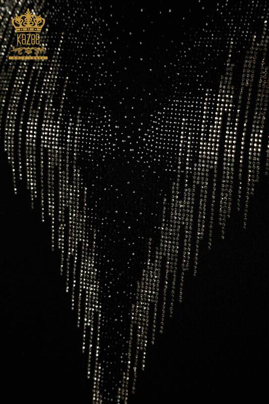 Vendita all'ingrosso Maglieria da donna Maglione Cristallo Pietra ricamato modello americano nero - 30330 | KAZEE