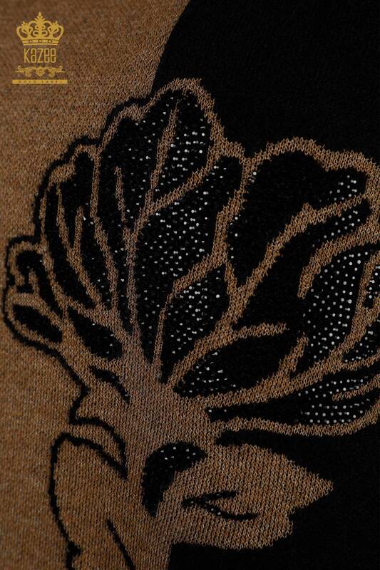 Vendita all'ingrosso Maglieria da donna maglione due colori rosa ricamata pietra ricamata nera - 30197 | KAZEE
