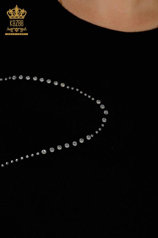 Maglieria da donna all'ingrosso Maglione girocollo pietra ricamata nera - 30157 | KAZEE