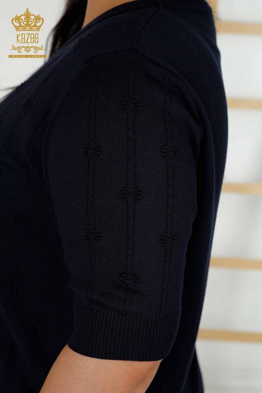 Maglieria da donna all'ingrosso Maglione a maniche corte in tessuto blu scuro - 30129 | KAZEE