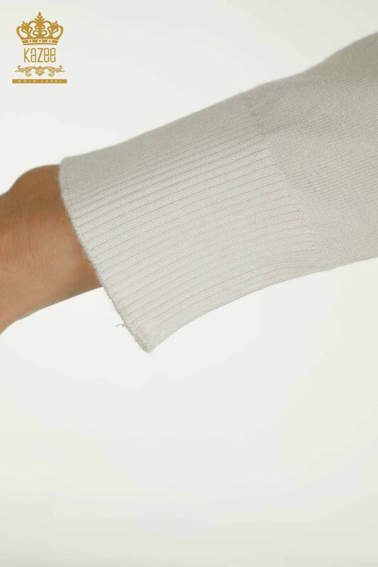 Maglieria da donna all'ingrosso maglione manica lunga pietra ricamata ecru - 30635 | KAZEE