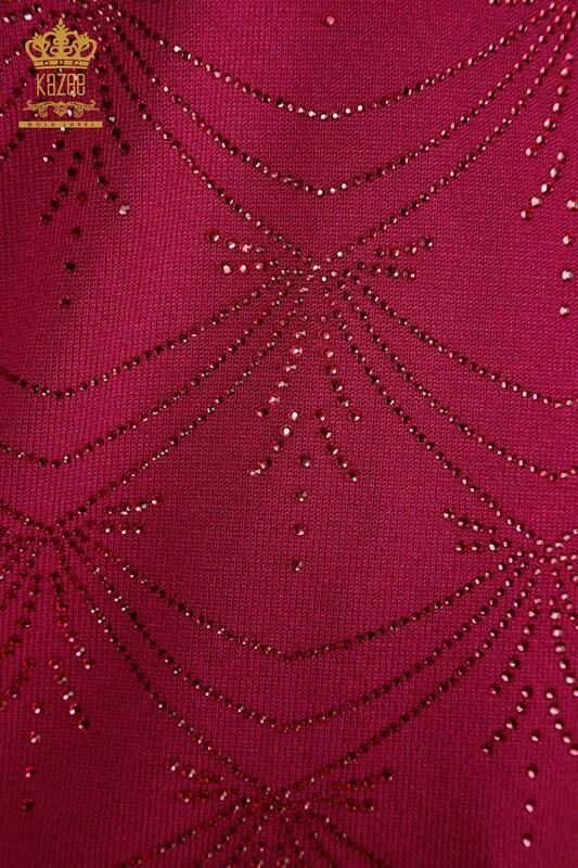 Maglieria da donna all'ingrosso maglione manica lunga pietra ricamata lilla - 30635 | KAZEE