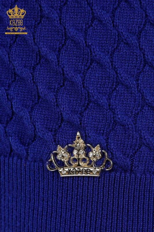 Ingrosso Maglieria Donna Maglione Modello Americano - Basic - Con Logo - Blu Scuro - 30119 | KAZEE