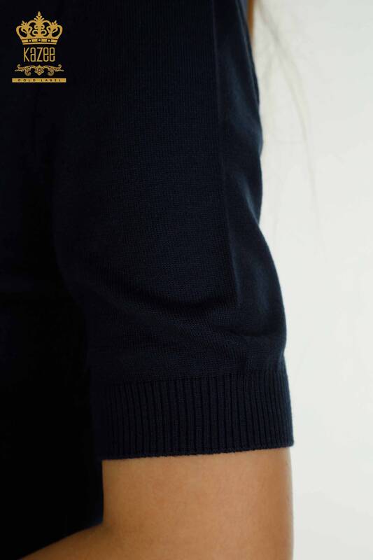 Vendita all'ingrosso Maglieria da Donna Maglia Modello Americano Basic Logo Blu Navy - 15943 | KAZEE