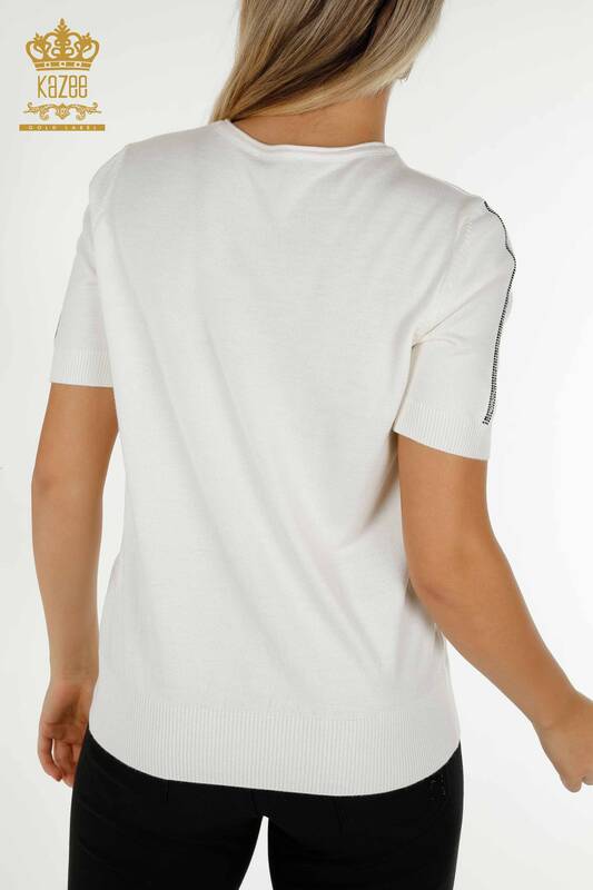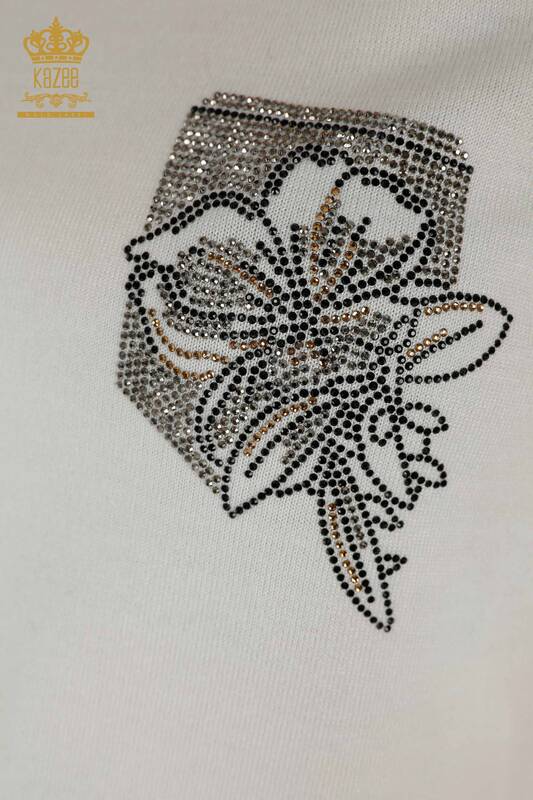 Vendita all'ingrosso Maglieria da Donna Maglia Modello Americano Stone Ricamato Ecru - 30534 | KAZEE