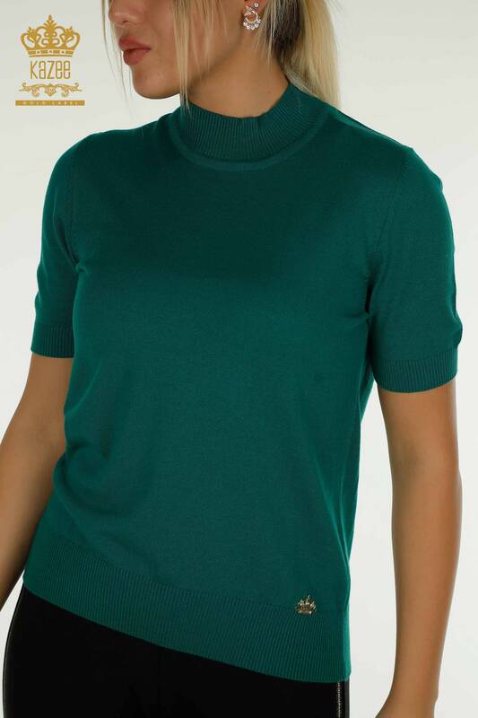 Vendita all'ingrosso Maglieria da Donna Maglia Modello Americano Basic Verde con Logo - 14541 | KAZEE