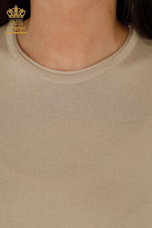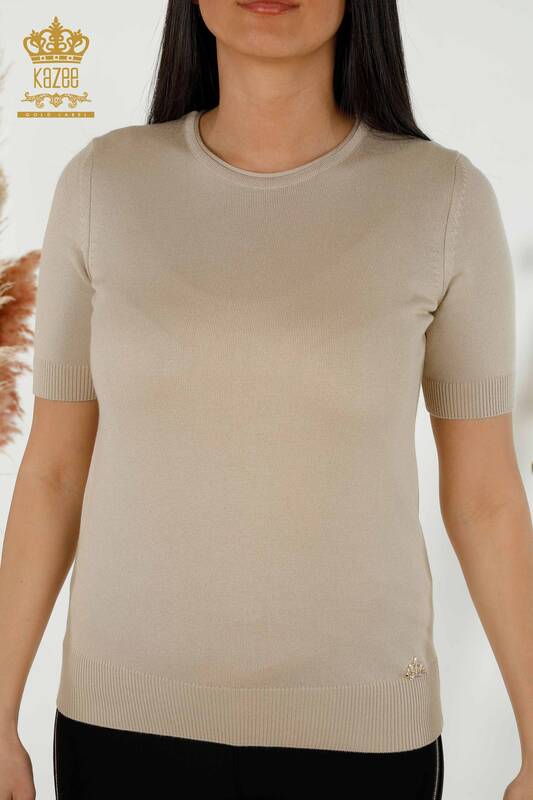 Maglieria Donna all'Ingrosso Maglione Modello Americano Basic Logo Beige Chiaro - 15943 | KAZEE