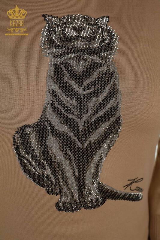 All'ingrosso Maglieria Donna Maglione Tiger Pattern Stone Ricamato Beige - 30127 | KAZEE