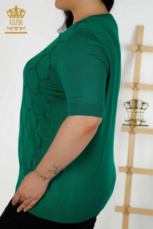 Maglieria Donna all'Ingrosso Maglione Pietra Ricamata Fantasia Verde - 30317 | KAZEE
