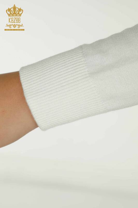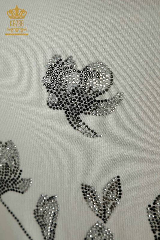 Maglieria da donna all'ingrosso maglione pietra ricamata a motivi floreali écru - 30471 | KAZEE