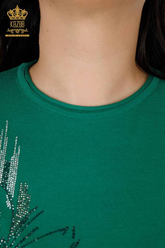 فروش عمده ژاکت بافتنی زنانه سنگ دوزی طرح گل سبز - 16907 | KAZEE