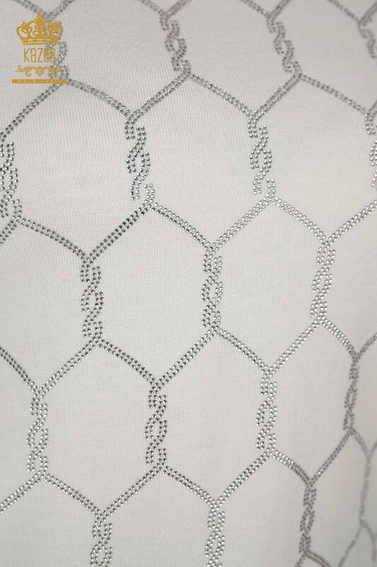 Maglieria Donna all'Ingrosso Maglione Stone Ricamato Fantasia Ecru - 30317 | KAZEE