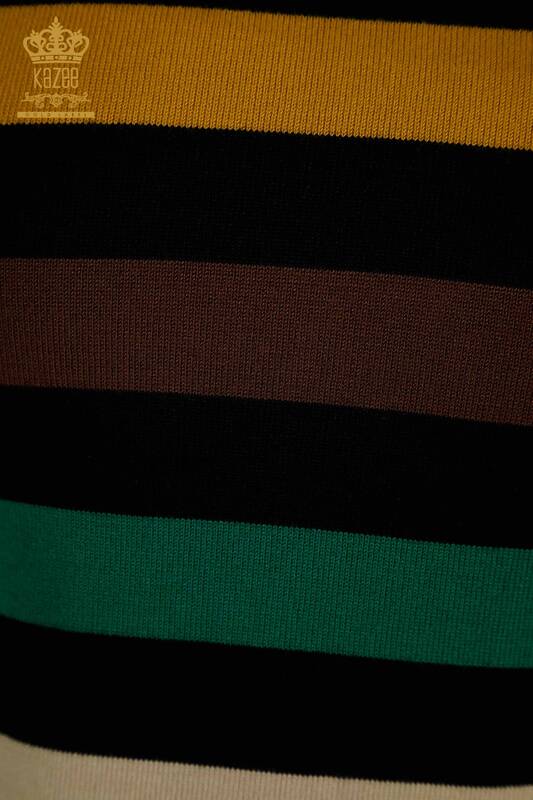 Maglieria da donna all'ingrosso maglione a righe bicolore nero zafferano - 30786 | KAZEE