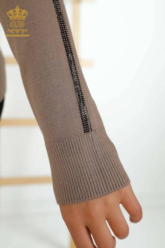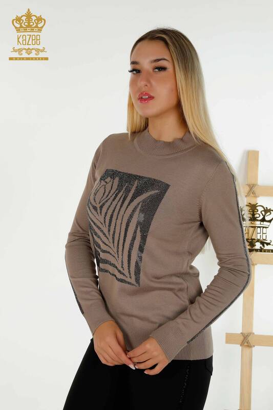 Maglieria da donna all'ingrosso maglione visone ricamato pietra fantasia rosa - 30448 | KAZEE