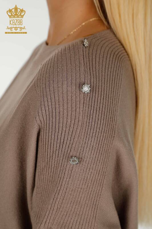 Vendita all'ingrosso Maglieria da donna Maglione Spalle dettagliate Manica lunga Visone - 30192 | KAZEE