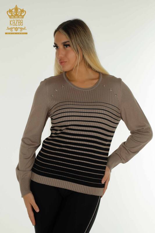 Vendita all'ingrosso Maglieria da donna maglione con dettaglio spalla manica lunga visone-nero - 30079 | KAZEE