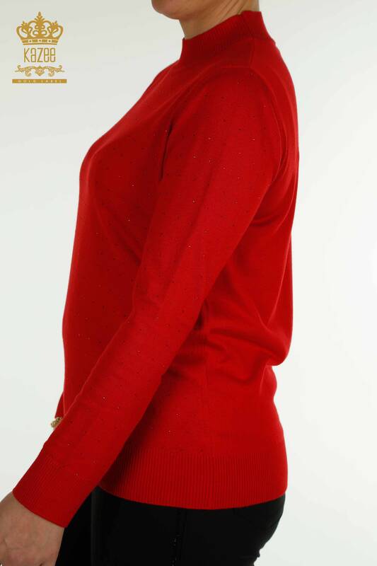 Vendita all'ingrosso Maglieria da donna maglione colletto alla coreana ricamato pietra rosso - 30677 | KAZEE