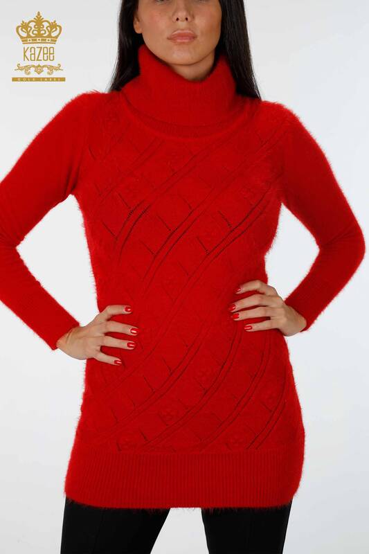 Maglieria da donna all'ingrosso Tunica a righe con pietre ricamate a collo alto - 18591 | KAZEE