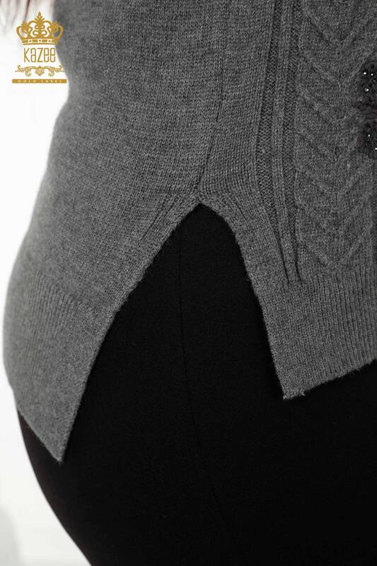 All'ingrosso Donna Maglione Fiore Fantasia Pietra Ricamato Antracite - 30179 | KAZEE