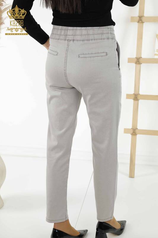 Pantaloni Donna all'Ingrosso Pietra Ricamata Vita Elastica Grigio Chiaro - 3674 | KAZEE