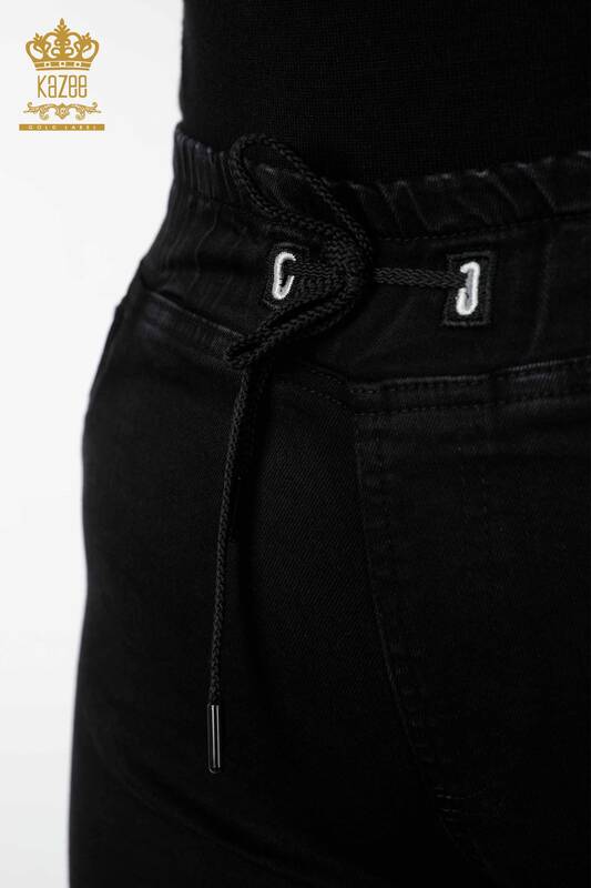 Pantaloni da donna all'ingrosso con tasca dettagliata in vita elastica nera - 3659 | KAZEE