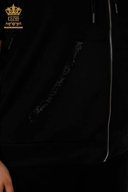 All'ingrosso Tuta da donna Set con cerniera manica corta pietra ricamata Black-20389 | KAZEE