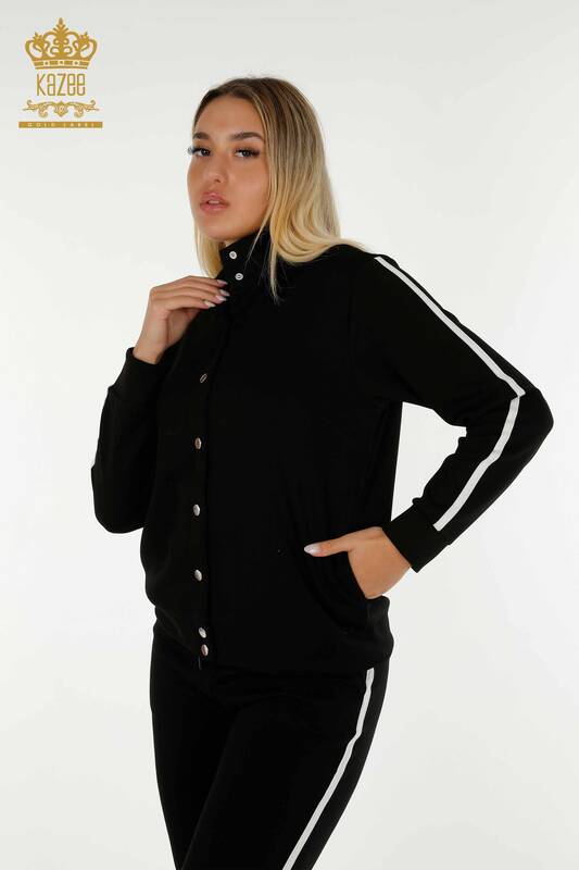 Vendita all'ingrosso Tuta da donna con bottoni dettagliati a righe nero ecru - 17594 | KAZEE