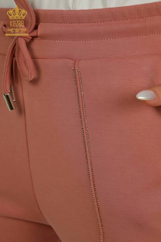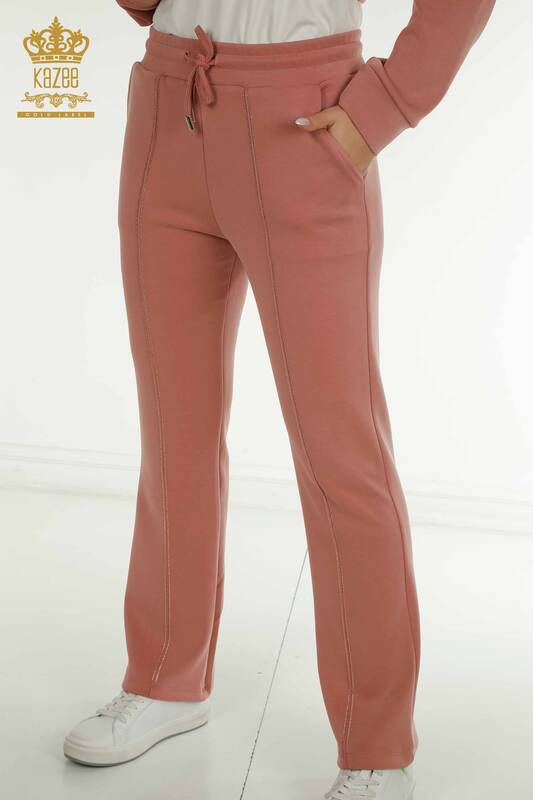 Vendita all'ingrosso Set di tute da donna con cappuccio e cerniera in pietra ricamata rosa antico - 17618 | KAZEE