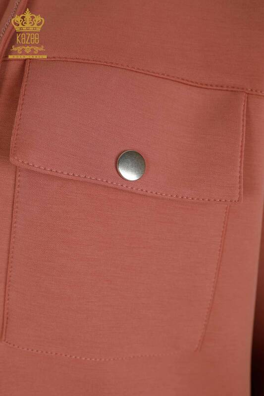 Vendita all'ingrosso Set di tute da donna con cerniera, bottoni e cappuccio Dusty Rose - 17620 | KAZEE