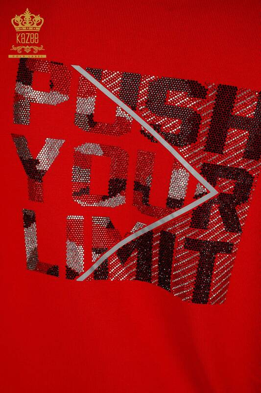 Set tuta da donna all'ingrosso con tasca con cerniera e ricamo in pietra rossa - 16679 | KAZEE