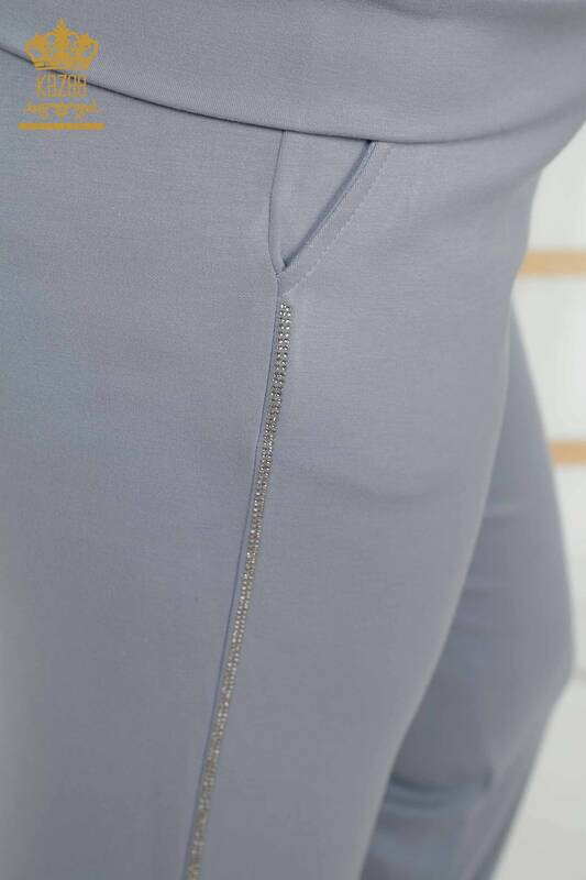 Set di tute da donna all'ingrosso a maniche corte con tasca ricamata in pietra blu - 20393 | KAZEE