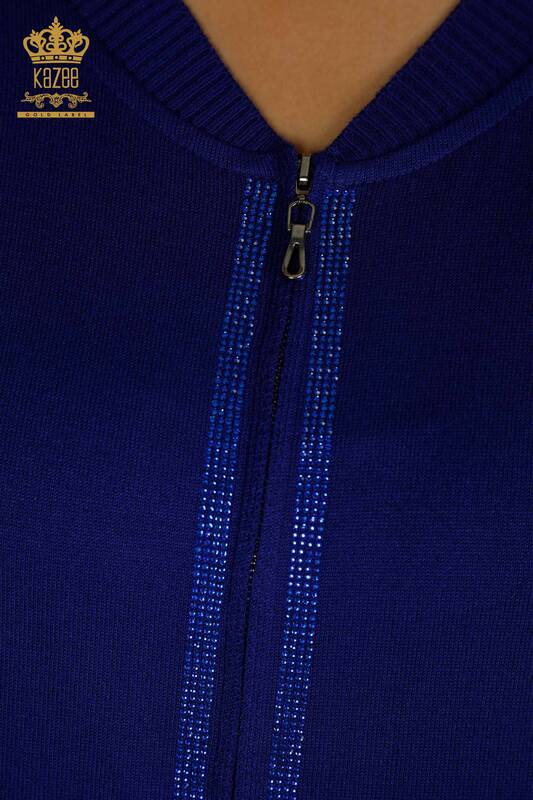 Set di tute da ginnastica da donna all'ingrosso, ricamo in pietra, cerniera, sak con motivo leopardato - 16662 | KAZEE