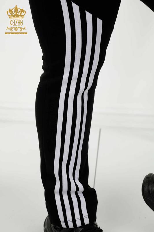 Vendita all'ingrosso Set di tute da donna con cappuccio a righe bicolore nero bianco - 17569 | KAZEE