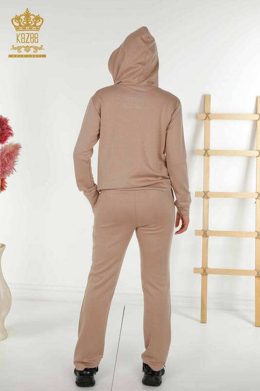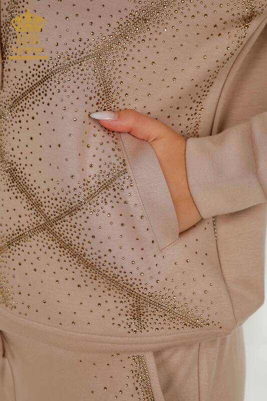 Vendita all'ingrosso Set di tute da donna con tasca in visone con cappuccio ricamato in pietra - 17557 | KAZEE