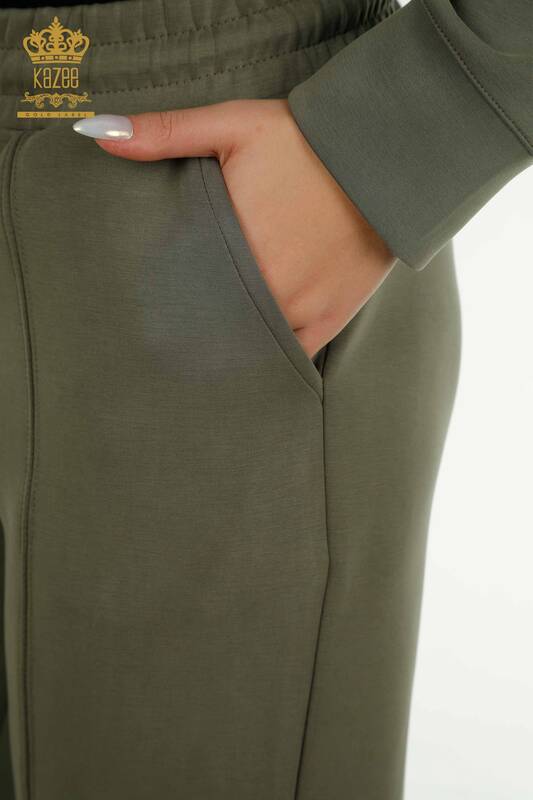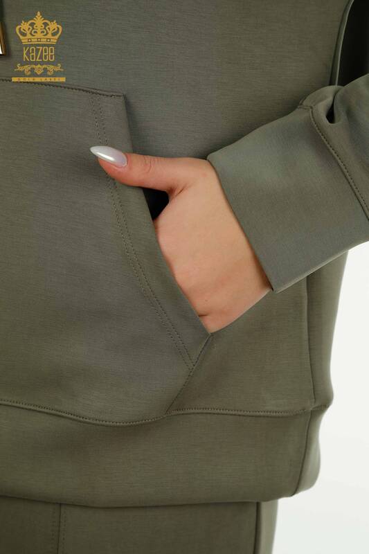 Set di tute da donna all'ingrosso con tasca con cappuccio e bottoni dettagliati color kaki - 17627 | KAZEE
