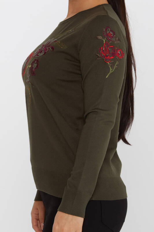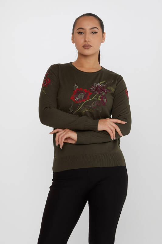 Jersey de punto con bordado de flores y bordado de piedras Vert - 31673 | KAZEE (Juego de 3 L-XL-2XL)