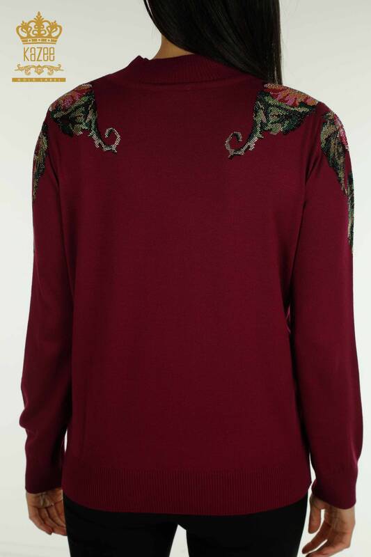 الجملة المرأة سترة تريكو الكتف زهرة مفصلة حجر ملون مطرز أرجواني - 30542 | كازي
