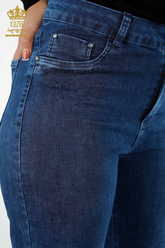 بنطلون جينز نسائي قطن مطرز بأحجار الكريستال الملونة - 3588 | كازي