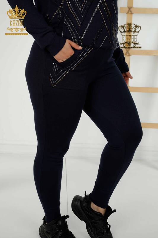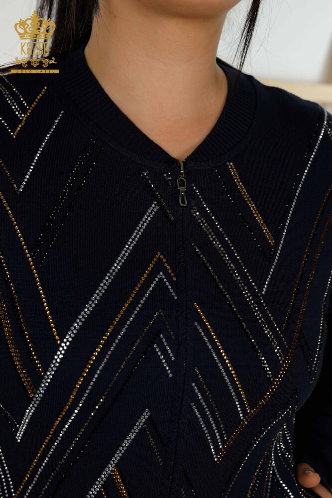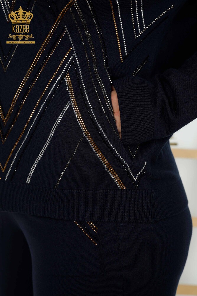 بدلة رياضية نسائية للبيع بالجملة مطرّزة بالجيب سحاب كحلي - 16676 | كازي