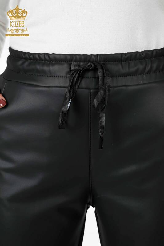 بنطلون جلد للنساء بالجملة مطرز بحجر كريستال فضي - 3645 | كازي