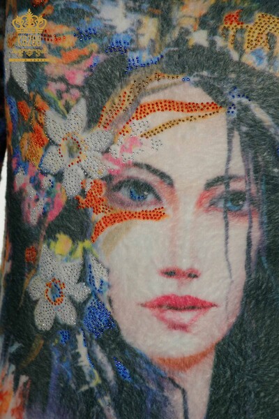 الجملة المرأة الأنجورا تريكو الرقمية المطبوعة حجر مطرز كم طويل الرقمية - 40017 | كازي