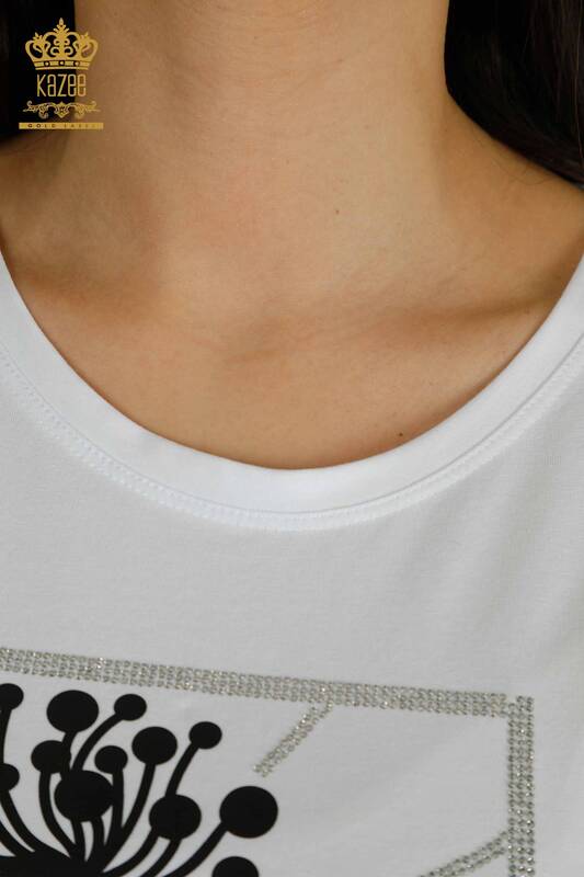 الجملة المرأة بلوزة حجر مطرز منقوشة قصيرة الأكمام طاقم الرقبة الأبيض - 79863 | كازي