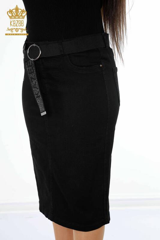 تنورة نسائية من الدنيم - حزام مطرز بالأحجار المفصلة من Kazee - 4149 | كازي