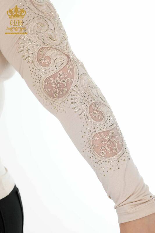 سترة نسائية تريكو نسائية برقبة على شكل V ومطرزة بأحجار الكريستال - 79008 | كازي