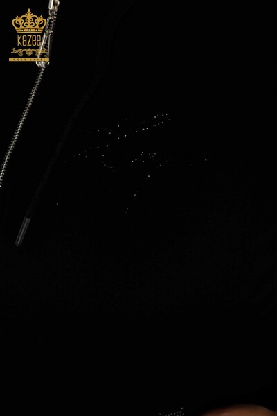 بدلة رياضية نسائية بالجملة بجيب مقنعين مطرّز من الحجر الأسود - 20392 | كازي