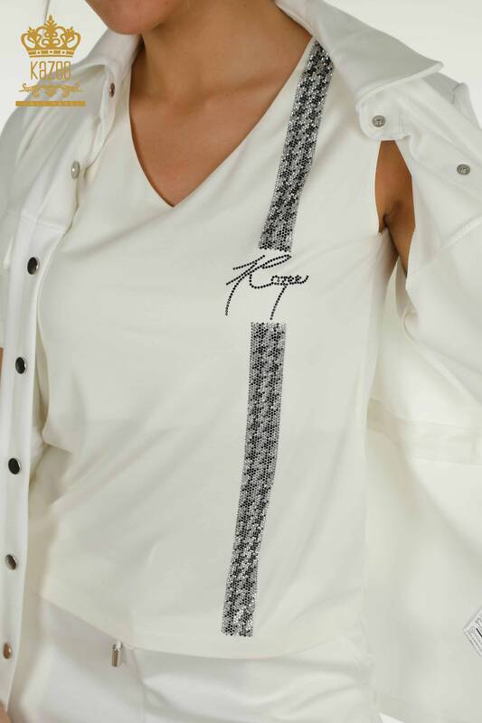 الجملة المرأة طقم رياضي الثلاثي زر جيب مفصل كم قصير إكرو - 17633 | كازي