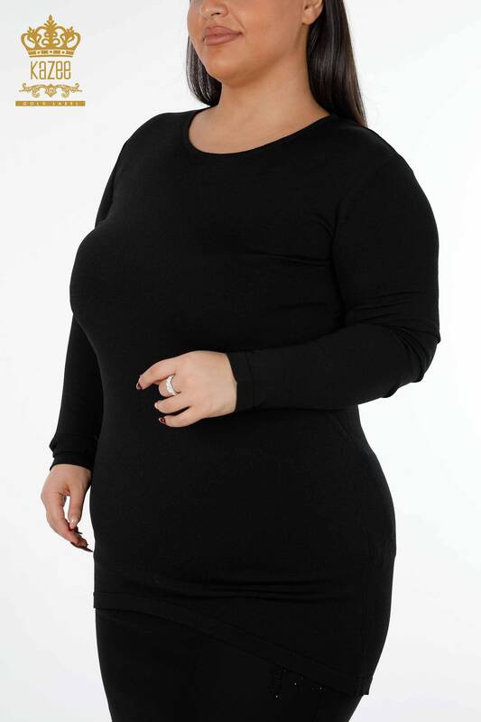 تونك نسائي - بياقة دائرية وأكمام طويلة ، أسود - 14418 | كازي