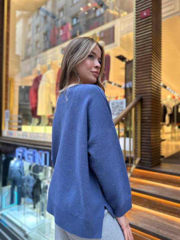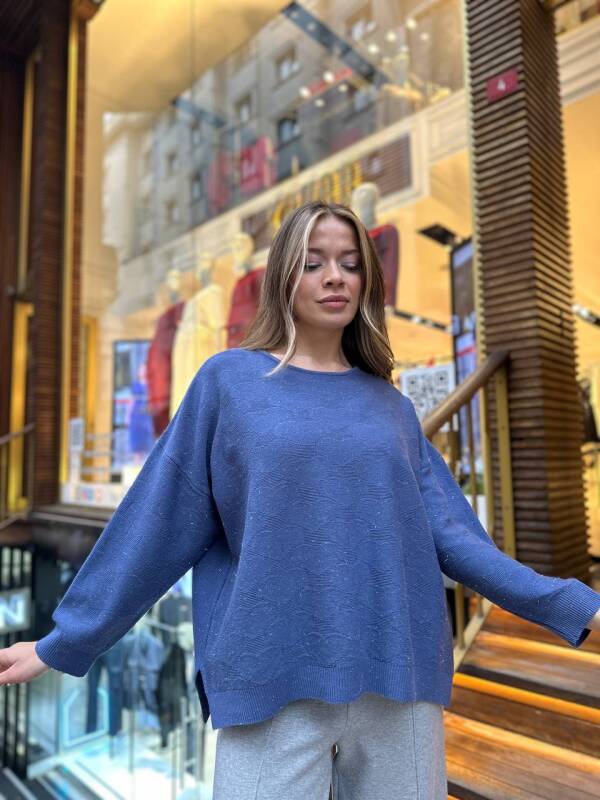 كنزة صوفية محبوكة بتدرج لامع، أزرق أساسي - 32141 | كازي (طقم من 3 قطع، مقاسات M-L-XL)