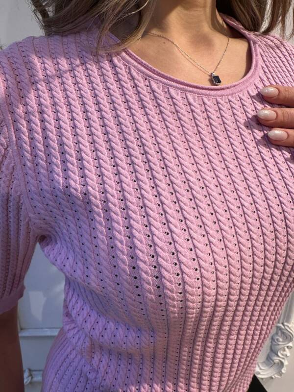 كنزة صوفية وردية اللون بأكمام قصيرة - 32062 | كازي (طقم من 3 قطع: M-L-XL)