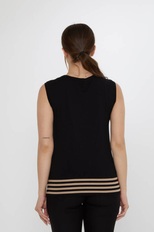 كنزة صوفية محبوكة بنقشة، بدون أكمام، أسود-بيج - 31704 | كازي (طقم من 3 قطع S-M-L)